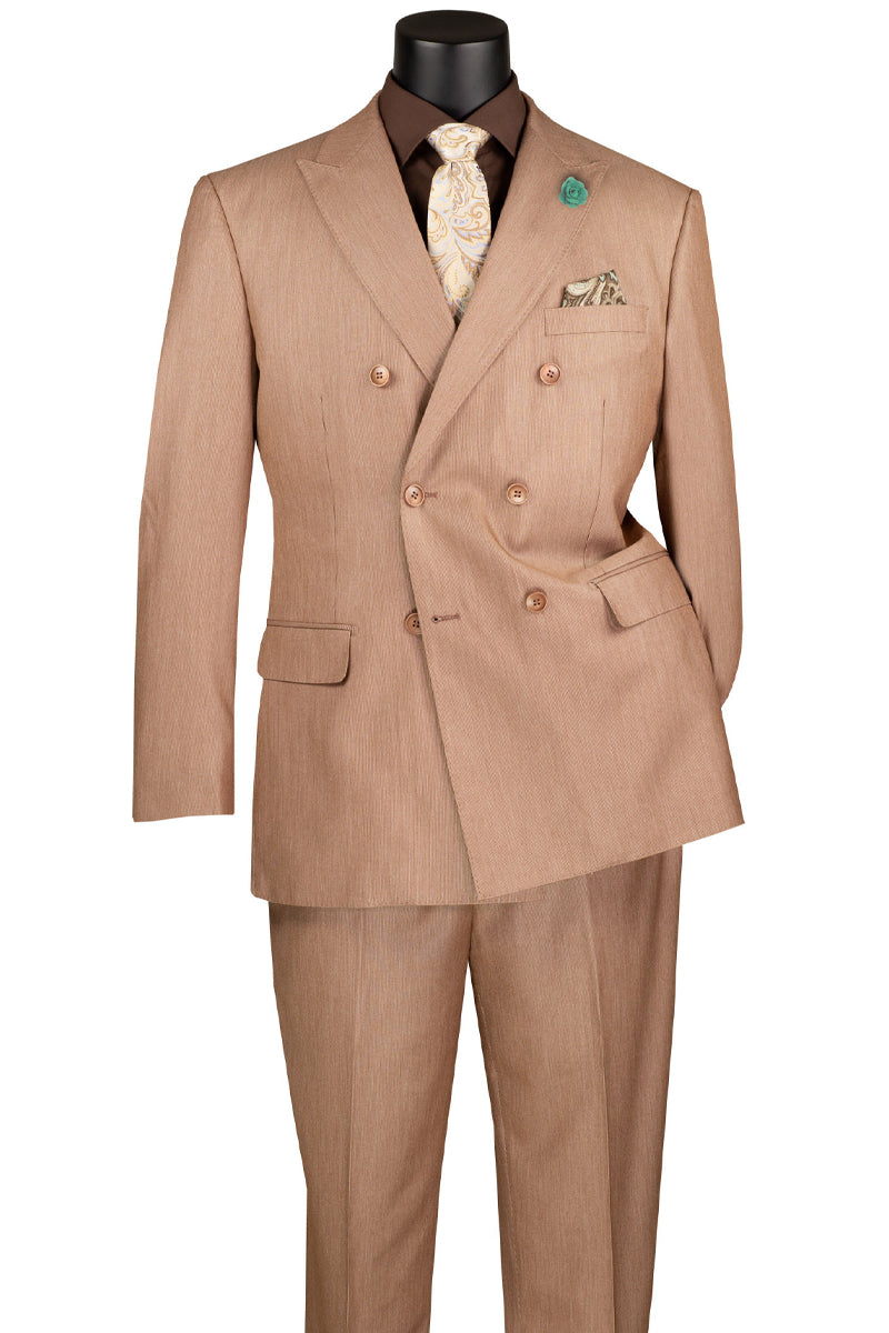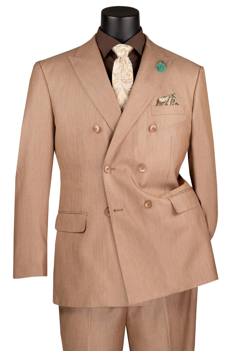 Men's Double Breasted Sharkskin Suit in Tan