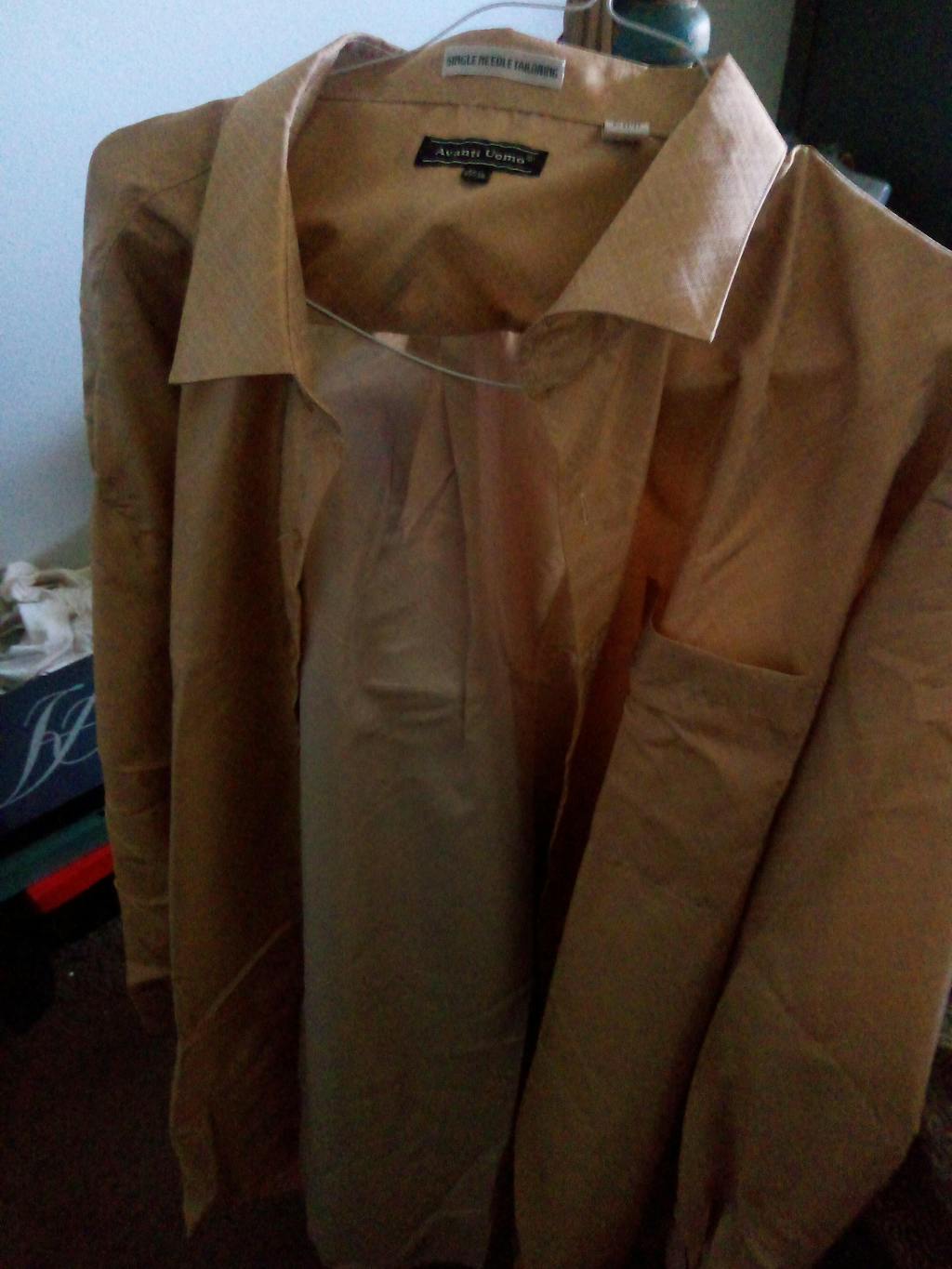 Men's weave Pattern French Cuff Dress Shirt, Tie & Hanky Set in Tan