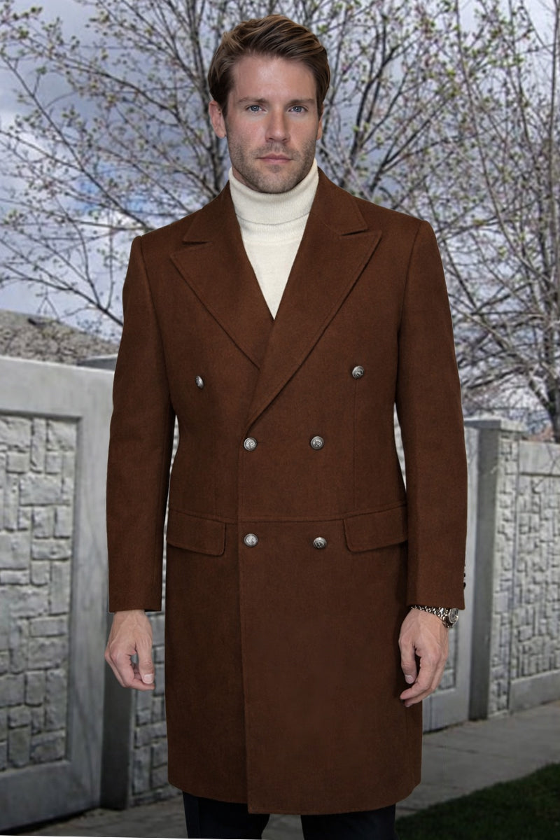 Men's Designer 100% Double Breasted Winter Overcoat with Removable Fur Collar in Light Brown