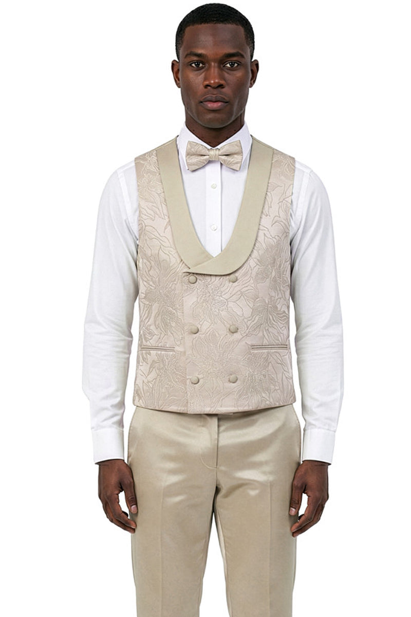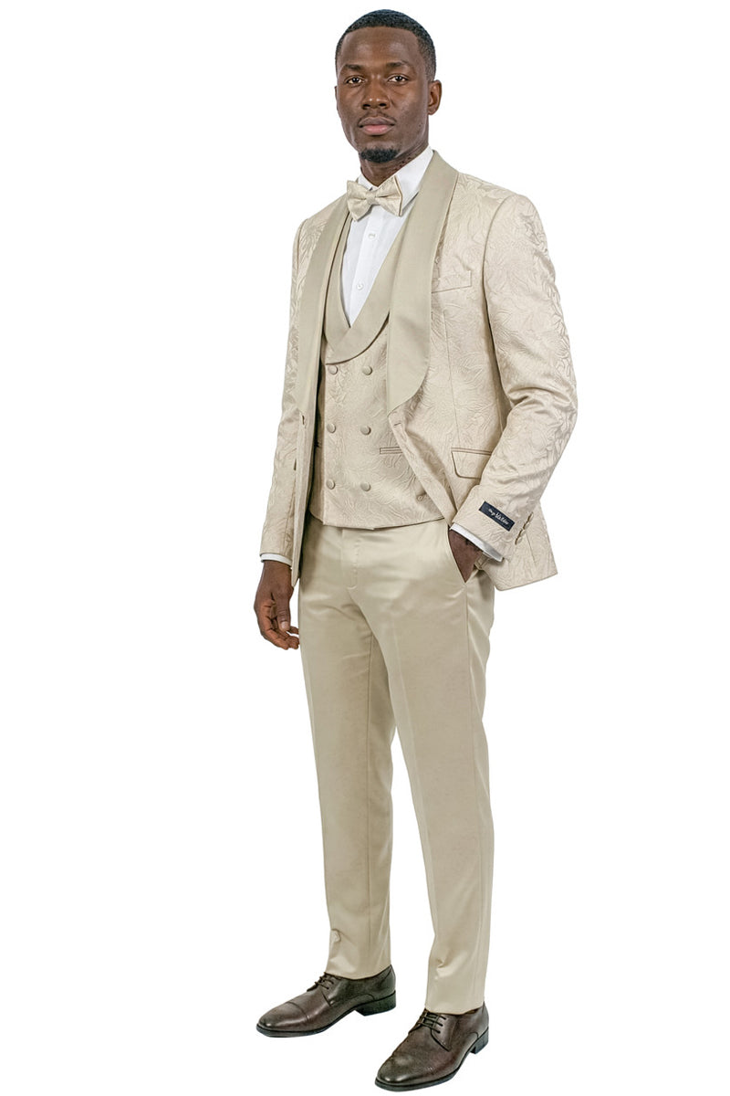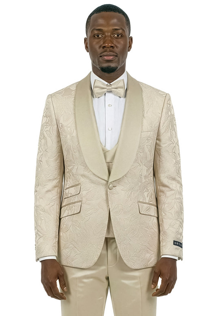 Men's Slim Fit Satin Paisley Wedding & Prom Tuxedo in Champagne