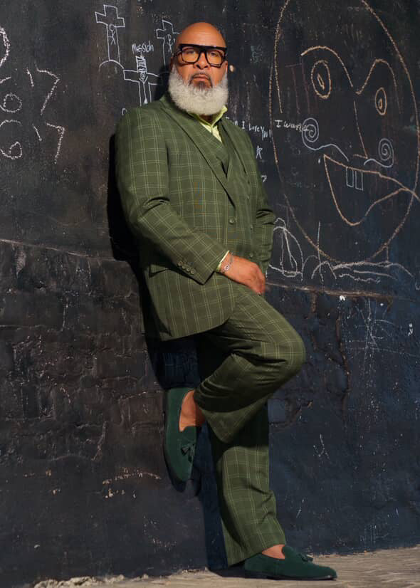 Mens 2 Button Double Breasted Vest Suit in Olive Windopane Plaid