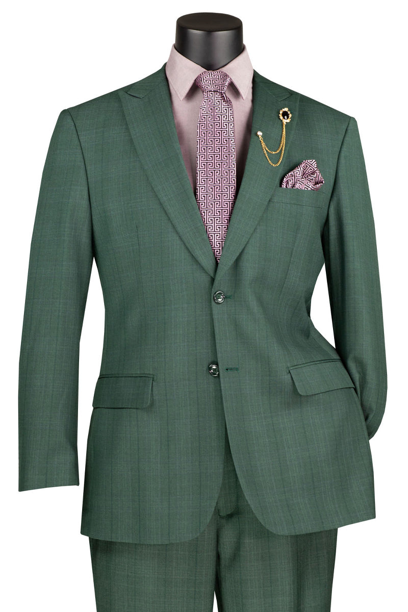 Men's Modern Fit Summer Glen Plaid Business Suit in Forest Green