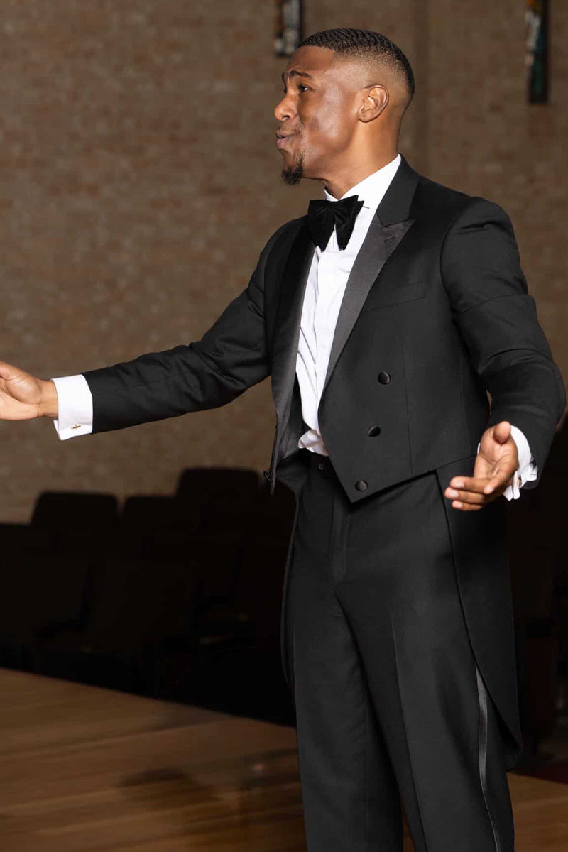 Mens Classic Vested Tail Wedding Tuxedo in Black